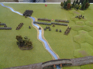 1-я Прусская пехотная бригада при поддержке 1-й артиллерийской бригады занимает позицию левее города Лузерштадта